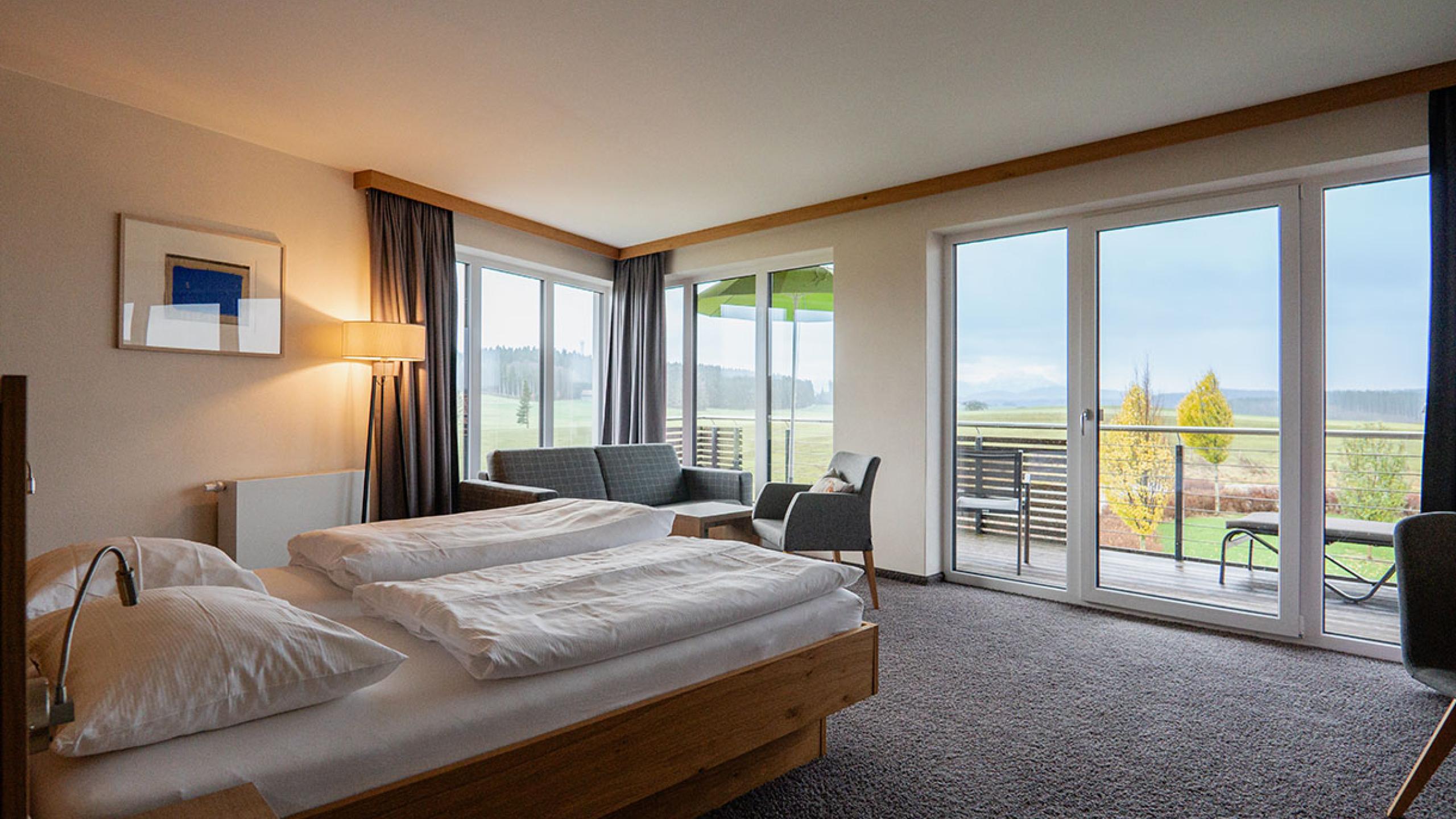 Die Panoramasuite bietet durch bodentiefe Fensterfronten eine Aussicht mit Weitblick. Die Suiten befinden sich in der 1. und 2. Etage.